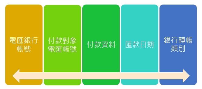 ☺可管理「付款對象電匯帳號」及「付款資料:付款日期、對象、部門…】。