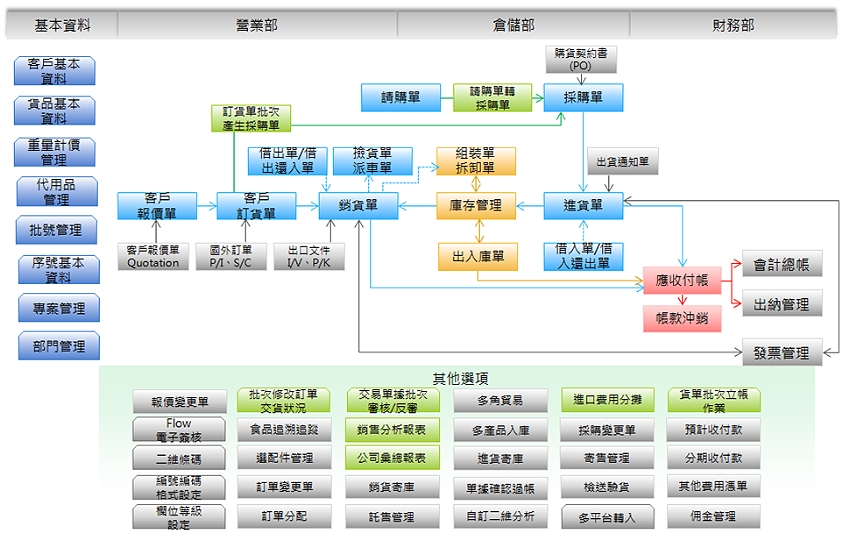 進銷存系統提供【加值選購】模式,滿足不同行業應用需求:訂單變更/客製選配訂單/託售/寄庫/分期收付款… |