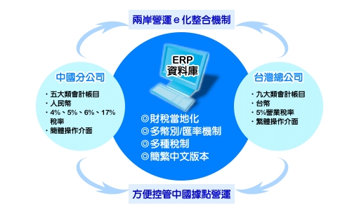 兩岸三地企業常需取得各據點的生產效能、庫存狀況、財務報表等資訊,以管控各據點的營運績效,但由於兩地時空的差距,常常總公司獲得的並不是最即時的資訊,而當總公司發現分據點的營運問題時,也為時已晚,無法立即解決。