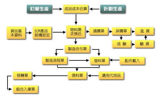 製造業如要輕鬆管控『物料』、『產能』、『成本』,可藉由生產製造軟體系統達成管理目標,透過電腦化的BOM表產品結構設定、成本估算、MPS主生產排程模擬、MRP物料需求預估管理流程,在生產前先進行多角度包括庫存、訂貨採購未交或貨品製令未領等多種思考情況進行物料管理的需求預估,精算有效地避免因物料不足而於生產時停工或購買太多庫存積壓太多的成本,提昇生管準確性及即時性。並可依企業不同需求開放使用單品加工、半成品組裝入庫管理,全程追蹤製令、製程掌握生產進度,以利提高產能利用率,縮短製造週期。