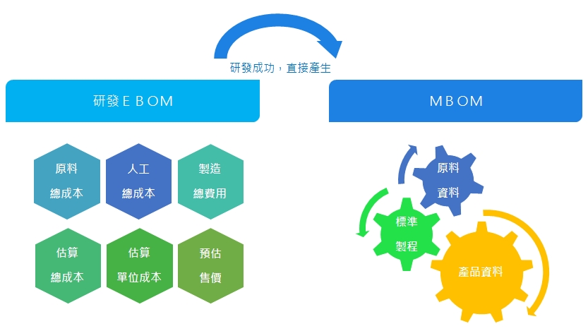 ☺快速方便建立【研發BOM(EBOM)】。 ☺【製造設計單】輕鬆估算研發設計產品成本。 ☺可估算製造此產品的成本及利潤,有助業務與客戶進行報價。 ☺即時呈現研發狀態:設計中、設計中止、設計成功。 ☺產品研發成功,直接產生現有產品資料及MBOM。