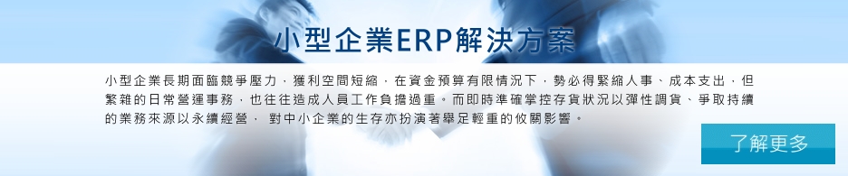 小型企業e化入門【進銷存】管理,內含進銷存、應收付款、報價利潤管理、廠商/客戶/貨品管理,藉由最簡易上線的進銷存e化流程,提昇企業日常運作效率。more |