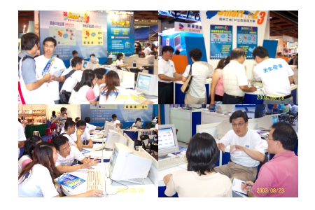 凌越資訊熱情參與2003/8/22~26世貿「軟體暨資訊應用展」,共計展出八個攤位。在凌越展覽區中,主要劃分為「兩岸三地ERP出色管理方案--Smart.e23」、「21世紀最佳企業ERP解決方案--天生贏家系列」、「跨世紀資訊化新主張--最佳拍檔」商軟,吸引了近千人至凌越攤位參觀選購!