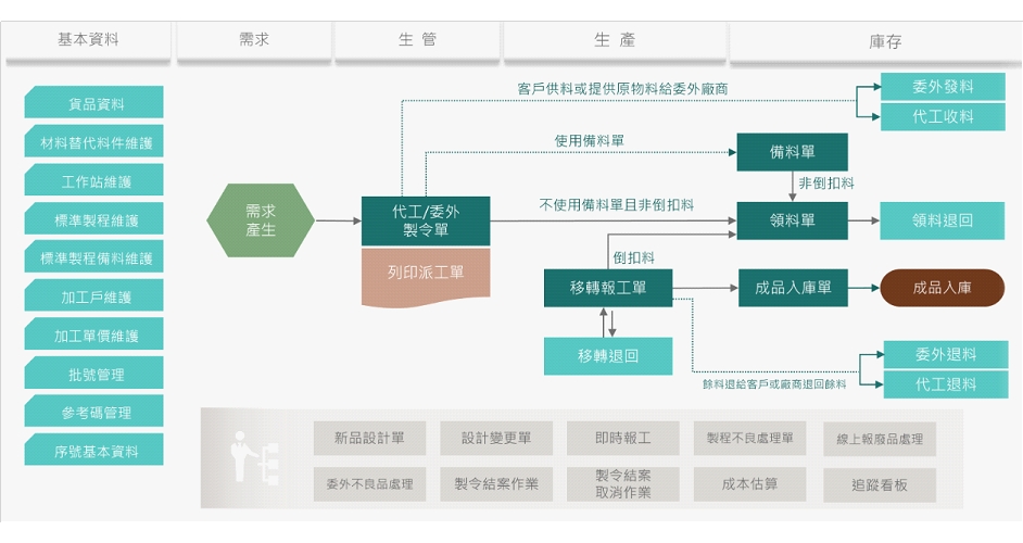 批次生產排程規劃、物料需求採購計劃 LRP轉開請購單/採購單、生產工令、加工工令