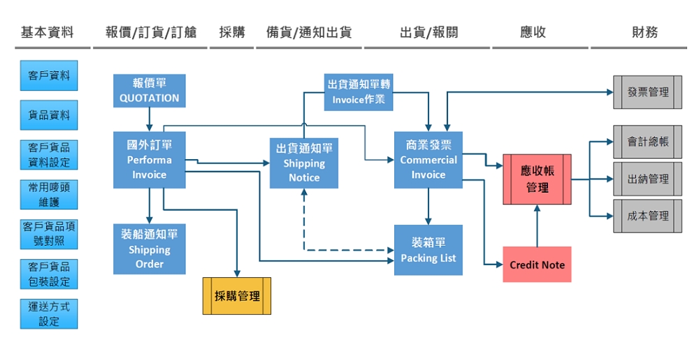追蹤採購、進貨、製令、Invoice 、 Credit Note,掌握已未交貨現況