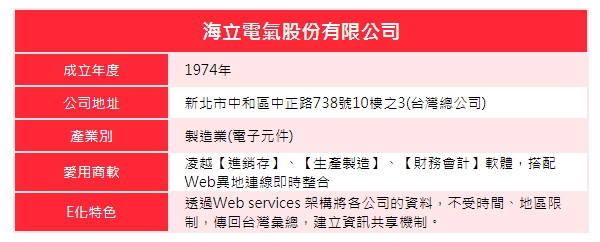 海立公司在台灣有兩個工廠,為了要讓工廠之間能夠做資料的交換,因此特別導入Web異地連線即時整合機制,讓工廠之間與總公司都可以透過Web services架構與外點連線做資料的整合,同時也讓總公司可以隨時掌控工廠的執行進度,業務人員也能依照進度適時的對客戶做出回報。